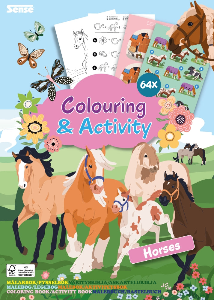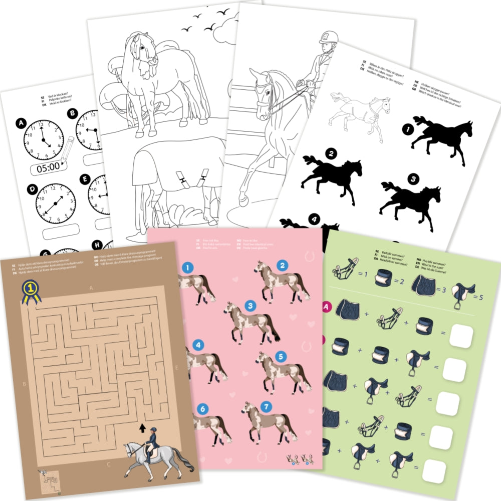 år nya aktivitetsbok hästar med 64 sidor är fylld med roliga pyssel och färgglada bilder. Klura, rita och färglägg fina hästar.
