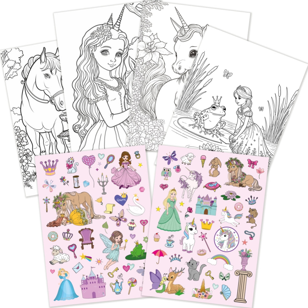 Vår nya målarbok sagovärld innehåller 24st sidor att färglägga med en förtrollande värld bland prinsessor, enhörningar och 2st ark med stickers som du kan dekorera med.